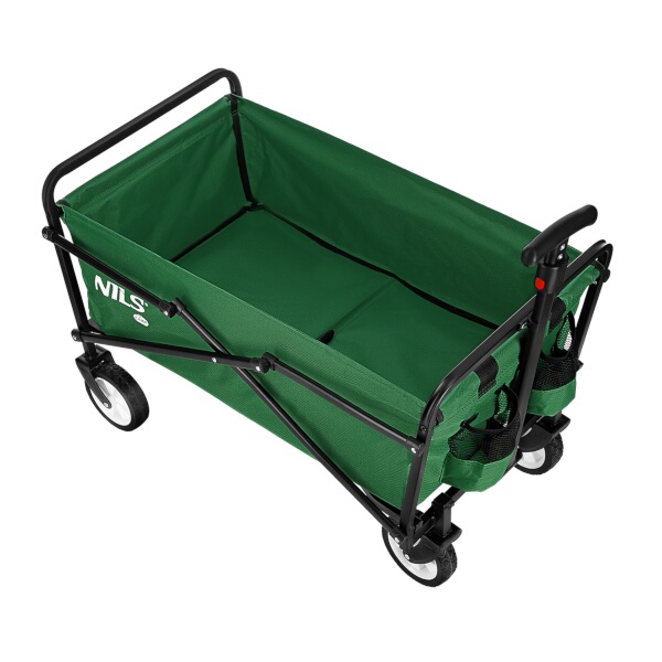 Vďaka jednoduchému a rýchlemu spôsobu skladania je vozík mimoriadne praktický a ľahko sa používa. Možno ho rýchlo zložiť a rozložiť jediným pohybom, čo je mimoriadne užitočné pri cestovaní vlakom, lietadlom, karavanom alebo autom. V zloženom stave má vozík rozmery 46 x 65 x 20 cm a po sklopení rukoväte je jeho výška len 48 cm. Po zložení možno vozík prenášať pomocou popruhov spojených pásikom na suchý zips. Po rozložení sú rozmery 75 x 46 x 95 centimetrov (výška bez rukoväte 48 centimetrov) a objem vozíka je 75 litrov. Vozík je teda dostatočne veľký na prepravu všetkého vybavenia, či už ide o stan, spacie vaky a batoh, alebo napríklad piknikový kôš, piknikovú deku a chutný obed. V prednej časti vozíka sa nachádzajú 2 sieťované vrecká, do ktorých sa pohodlne zmestia napríklad fľaše s vodou.