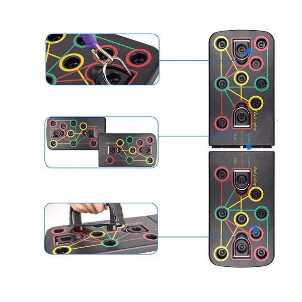 Multifunkčná skladacia doska, ktorá umožňuje variabilný tréning klikov. Doska je symetricky rozdelená na 2 polovice, každá časť obsahuje 5 párov otvorov pre umiestnenie dodávaných podpier. Každý pár otvorov umožňuje tréning pod iným uhlom, kedy sa precvičuje iná svalová skupina a to: