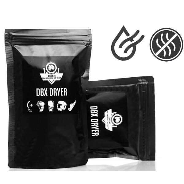 DBX Dryer je čierne vrecko s bielou, vyberateľnou vložkou naplnenou silikagélom. Silikagel sú prírodné, antibakteriálne a bez zápachovej – kryštáliky, ktoré pohlcujú vlhkosť a zápach. Jedno balenie DBX Dryer obsahuje 2x sáčok o rozmere 15 x 10 cm.