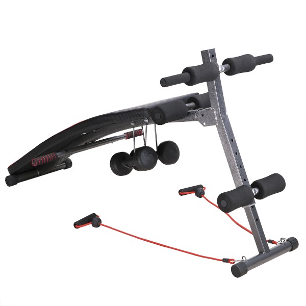 Šikmá lavička so závažím určená pre domáce použitie. Je určená k tréningu brušných svalov, bokov a chrbtice. Vďaka vinylovým činkám môže užívateľ vykonávať tréning hornej polovice tela. Poskytuje vynikajúcu stabilitu a s veľkými možnosťami nastavenia (výšky a uhla), bude mať cvičenec veľa možností v tréningu. Je vybavený protišmykovými úchyty pre pohodlie a bezpečnosť pri cvičení.