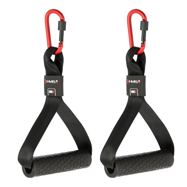 Adaptér slúži na pripevnenie k hornej a dolnej kladke, prípadne ho možno pripnúť k záťažovej gumičke. Rukoväť z vysokogramážnej gumy zaručuje vysoký komfort pri tréningu a pevný úchop. Hliníková skrutkovacia karabína sa sklopí a rýchlo a bezpečne sa zavesí na kladku.